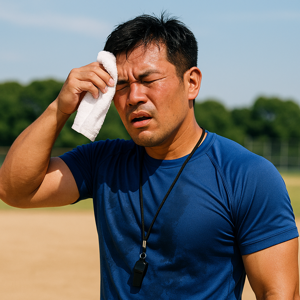 ある夏、野球部の合宿に毎日付き合ってたら、顔と腕が真っ赤に炎上。夜になるとシャワーすら痛くて浴びられず、寝返りを打つたびに「イテッ!」と叫んでた。 次の日、職員室で同僚に「なんか顔テカってない?」と言われたけど、それは汗やなくて炎症でテカってたんや…。生徒からは「先生、焦げてる!」と笑われて、 マジで穴があったら入りたかった。